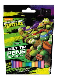 Zestaw pisaków w żywych kolorach. Wąskie końcówki z twardego filcu umożliwiają rysowanie cienką kreską. Ozdobione wizerunkami ulubionych bohaterów Teenage Mutant Ninja Turtles.