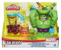Hulk i jego wciskana głowa to zestaw z serii Marvel, który pozwoli tworzyć pieczątki w plastelinie w wyjątkowy sposób! Naciśnięcie na głowę Hulka sprawia w ruch jego ręce, które odbijają pieczątki w ciastolinie.