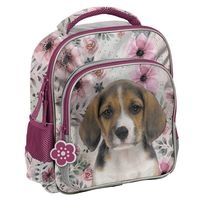 Plecak do zerówki "0", usztywnione lekko plecy. Uchwyt do przenoszenia, regulowane, wyściełane gąbką szelki, dwie kieszenie boczne z siatki, mieszczą bidon, małą butelkę lub termos. Waga 490g.