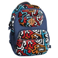 Plecak szkolny z usztywnionymi, wypełnionymi gąbką plecami i szelkami. Plecak posiada dwie pojemne komory oraz wiele zewnętrznych kieszonek na drobiazgi. Wewnątrz znajduje się kiszonka na laptop, który można dodatkowo zabezpieczyć paskiem na rzep. Kieszonki boczne z elastycznymi tasiemkami ułatwiają przenoszenie butelki lub bidonu z napojem. Plecak jest pokryty kolorową, młodzieżową grafiką.
