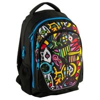 Plecak, dwie komory, jedna kieszonka z przodu, boczne kieszenie z siatki, sztywne, ergonomiczne plecy pokryte siatką, profilowane szelki, sztywne dno, elementy odblaskowe. Materiał Polyester/PVC Rozmiar 44x32x17cm