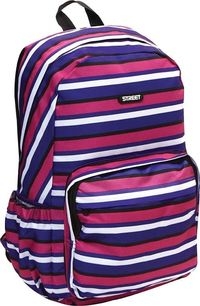 Plecak młodzieżowy jednokomorowy, duża kieszeń przednia, dwie kieszenie boczne, szelki i plecy wyłożone miękkim materiałem..