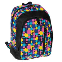Wygodny plecak szkolny. Plecy i szelki wyściełane gąbką zapewniają komfort użytkowania. Obszerna komora zamykana na zamek 2 kieszenie ze ściągaczem ? idealne na napój. Dodatkowa bardzo obszerna przednia, zapinana kieszeń. Elementy odblaskowe dla bezpieczeństwa dziecka.