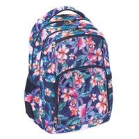 Plecak STK z usztywnionymi i wypełnionymi gąbką plecami i szelkami. Plecak posiada dwie pojemne komory oraz wiele przegródek i kieszonek na drobiazgi. Plecak jest dodatkowo wyposażony w pasek zapinany na wysokości mostka, który ułatwia noszenie plecaka. Wewnątrz znajdują się kiszonki na laptop i telefon oraz zasuwana na zamek kieszeń na ładowarkę do laptopa. Kieszonki boczne z elastycznymi tasiemkami ułatwiają przenoszenie butelki lub bidonu z napojem. Powierzchnia plecaka jest pokryta kolorową i modną grafiką.