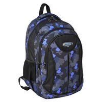 Plecak młodzieżowy, posiada dwie komory oraz jedną kieszonkę z przodu, dodatkowo ma dwie boczne kieszenie z siatki. Plecak ma usztywniane plecy częściowo pokryte siatką, profilowane pasy nośne pokryte siatką. Materiał Polyester Rozmiar 45x30x23cm