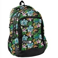 Plecak młodzieżowy, szkolny w kolorowe kwiaty. Posiada trzy pojemne komory, kieszeń przednią z organizerem zamykaną na zamek oraz dwie boczne kieszonki wykonane z siatki, które pomieszczą butelkę, bidon czy termos. W komorze głównej znajduje się przegroda (na laptop), w drugiej komorze organizer z kieszenią na zamek oraz uchwyt na klucze. Wzmocnione profilowane plecy oraz miękkie, regulowane szelki sprawiają, że plecak nosi się niezwykle komfortowo. Plecak posiada wygodny uchwyt do przenoszenia, uszko do powieszenia oraz elementy odblaskowe dla zwiększenia bezpieczeństwa na drodze lub po zmroku. Ze względu na swój rozmiar, plecak to idealnie rozwiązanie zarówno dla nastolatków, jak i dla młodszych dzieci. W Paso sięgamy po nowoczesne wzornictwo, nie zapominając o tym, by oferować solidne i praktyczne produkty.