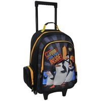 Plecak na kółkach. Plecak posiada jedną dużą komerę oraz dodatkową obrszerną kieszeń z przodu. Dodatkowo dwie kieszenie boczne, jedna z siatki, druga zapinana na zamek. Materiał Polyester/PVC Rozmiar 49x34x21 cm
