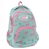 Plecak szkolny flamingi. Posiada trzy pojemne komory, kieszeń przednią z organizerem zamykaną na zamek oraz dwie boczne kieszonki wykonane z siatki, które pomieszczą butelkę, bidon czy termos. W komorze głównej znajduje się przegroda (na laptop), w drugiej komorze organizer z kieszenią na zamek oraz uchwyt na klucze. Wzmocnione profilowane plecy oraz miękkie, regulowane szelki sprawiają, że plecak nosi się niezwykle komfortowo. Plecak posiada wygodny uchwyt do przenoszenia, uszko do powieszenia oraz elementy odblaskowe dla zwiększenia bezpieczeństwa na drodze lub po zmroku. Ze względu na swój rozmiar, plecak to idealne rozwiązanie zarówno dla nastolatków, jak i dla młodszych dzieci. W Paso sięgamy po nowoczesne wzornictwo, nie zapominając o tym, by oferować solidne i praktyczne produkty.