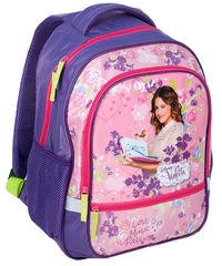 Plecak szkolny, dwie komory, dwie kieszenie boczne z siatki. Tył plecaka usztywniany pianką i pokryty siatką. Szelki profilowane z regulacją długości.
