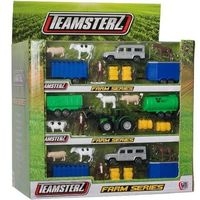 Zestaw pojazdów rolniczych z akcesoriami. W zestawie: ciągnik, przyczepa, beczkowóz, figurki zwierząt, figurka farmera, akcesoria rolnicze. Wiek 3+