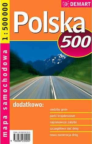 Mapa samochodowa Polski w skali 1:500 000. Jedyna składana mapa samochodowa w tak dokładnej skali. Siedziby gmin, parki krajobrazowe, zabytki, sieć dróg, numeracja dróg.