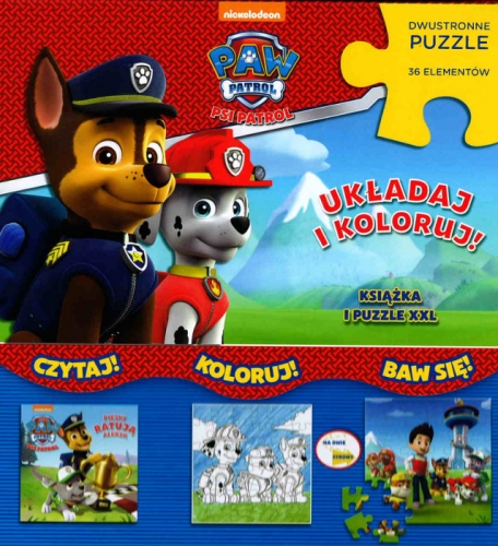 Psi Patrol. Układaj i koloruj. Książka i puzzle