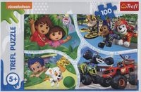 Puzzle 100 elementów z bohaterami kreskówek. Po ułożeniu powstanie obrazek o wymiarach 41x27,8 cm. Wysoką jakość, nasycenie kolorów i bezpieczeństwo układania zapewnia kalandrowany papier odbijający światło i wykorzystanie materiałów ekologicznych.