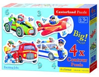 Puzzle składają się z czterech oddzielnych obrazków o zróżnicowanym stopniu trudności. Żywe kolory, odpowiednio dobrane wzornictwo sprawią, że małe dziecko z łatwością ułoży każdy obrazek. Puzzle te zapraszają do poznania fascynującego świata bajek, zwierząt i motoryzacji. Pomogą rozwinąć zdolność kojarzenia oraz zwiększyć sprawność