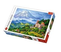 Puzzle 1000 elementów z pięknym malowanym pejzażem. Po ułożeniu powstanie obrazek o wymiarach 68x48 cm. Wysoką jakość, nasycenie kolorów i bezpieczeństwo układania zapewnia kalandrowany papier odbijający światło, pokryty ekologicznymi farbami spożywczymi.