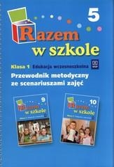 Przewodnik ściśle powiązany z programem nauczania „Razem w szkole”, składa się z pięciu części. Każdej z nich przyporządkowano po dwie części podręcznika. Dzięki temu nauczyciel ma możliwość zaplanowania pracy z uczniami na każde kolejne dwa miesiące roku szkolnego. Na uwagę zasługuje: nowa, użyteczna tematyka, wydzielone, uszczegółowione etapy wprowadzania liter i cyfr, dokładne omówienie sytuacji problemowych mających na celu przygotowanie uczniów do rozwiązywania różnorodnych problemów.Korzystając z przewodnika nauczyciel będzie miał okazję kształtować potrzebne uczniowi umiejętności, jednocześnie wpływając na rozwój logicznego, a także kreatywnego myślenia dziecka. Spełnione są tym samym cztery warunki: nowości, naukowości, problemowości i eksploratywności (doświadczania).W scenariuszach zaprezentowano różnego rodzaju zabawy, propozycje wykorzystania aktywnych metod prowadzenia zajęć w grupie, krótkie opowiadania, wiersze, zagadki i piosenki. Wielość propozycji pozwala nauczycielowi dokonać wyboru i decydować o przebiegu lekcji, biorąc pod uwagę warunki danej placówki, tempo pracy i możliwości uczniów. Przewodnik wspomaga nauczyciela w poszukiwaniu ciekawych, twórczych pomysłów na prowadzenie zajęć. W tabeli, roboczo nazwanej przewodnikiem w pigułce, uwzględniono materiał nauczania dotyczący każdej edukacji (z podaniem numeru danego scenariusza).Oczekiwane efekty nauczania przedstawiono odpowiednio po realizacji materiału przyporządkowanego każdemu blokowi i podzielono te umiejętności na podstawowe i ponadpodstawowe. Dla wygody nauczyciela wydzielono również tematykę zajęć, którą należy wpisać do dziennika lekcyjnego. Przygotowano również propozycje zajęć plastycznych, muzycznych i ruchowych oraz skrócone konspekty lekcji wychowania fizycznego.Wyszczególniono informacje na temat potrzebnych środków dydaktycznych. Nauczyciel znajdzie w przewodniku odnośniki ułatwiające korzystanie z zeszytów „Razem w szkole” oraz z publikacji „Diagnoza wstępna i karty badania umiejętności”. Krótkie rzeczowe wskazówki umieszczone w przewodniku pozwolą nauczycielowipomóc dzieciom o specyficznych trudnościach w uczeniu się. Natomiast podane informacje encyklopedyczne, scenariusze zebrań i imprez ułatwią przygotowanie się do zajęć (oszczędność czasu). Na końcu każdej części przewodnika znajdują się teksty wybranych piosenek. Na bazie materiałów zamieszczonych w przewodniku nauczyciel może tworzyć własne scenariusze lekcji.Przewodnik jest przejrzysty, czytelny i nowoczesny. Korzystając z tej propozycji nauczyciel nie jest tylko odtwórcą, ale współtworzy, decyduje, wybiera, sam się rozwija i stymuluje przebieg procesu nauczania w powierzonej mu grupie uczniów.