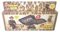 Metalowy rewolwer na spłonkę w taśmie. Zabawka dla dzieci w wieku od 8 lat.