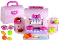Prowadzenie własnego gospodarstwa domowego jest nieustannie jedną z ulubionych zabaw kilkulatków. Ta przyjemna czynność sprawia, że dziecko może nauczyć się wielu istotnych w przyszłości rzeczy ? samodzielne przygotowanie kanapki nie będzie dla niego ciężkim zadaniem. Jeśli podczas wyboru zabawkowej kuchni kierujecie się Państwo takimi czynnikami jak mnogość elementów, efekty świetlne lub dźwiękowe, a także wysoka jakość wykonania, przedstawiamy idealny model. Decydując się na kuchnię zamkniętą w walizeczce można mieć pewność, że każdy mały miłośnik zabawy w gotowanie będzie uradowany.
