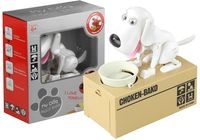 Wesoły piesek jest bardzo głodny i marzy o jedzeniu. Nie może powstrzymać się przed zjedzeniem czegokolwiek, co wpadnie do jego miseczki. Wrzuć tam monetę i obserwuj, jak wpada w szaleństwo jedzenia, zachłannie szukając smakołyku. Ta oryginalna, interaktywna skarbonka jest niespotykanie ciekawa. Ruchomy piesek pomoże zrozumieć dziecku, że oszczędzanie pieniędzy jest bardzo istotne i posiada same zalety ? a z wykorzystaniem prezentowanej skarbonki jest bardzo widowiskowe i zabawne.