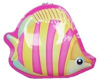 Metalowa skarbonka w kształcie rybki. Zamykana na kłódkę.