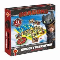Mieszkańcy Berku przygotowują się do swojego wielkiego święta. Najważniejszym elementem tego dnia miała być wielka uczta, na którą przygotowano przepyszne smakołyki, Okazało się jednak, że ktoś wkradł się w nocy do spiżarni i wszystko zjadł. Kto to mógł być? Czy łakomczuchem był smok cz też człowiek? A może i smok i człowiek do spółki zjedli tyle pyszności? Ślady przed wejściem do spiżarni są niewyraźne, ale na szczęście znalazło się kilkoro świadków, którzy widzieli w nocy przemykającą postać. W tej grze każdy z graczy wcieli się w inteligentnego i przenikliwego Smoczego Inspektora, a także przesłuchiwanego świadka. Zwycięzcą zostanie ten, kto jako pierwszy zbierze szereg informacji o łakomczuchu i ujawni jego imię mieszkańcom Berku. Zawartość pudełka: 2 tablice,48 klapek do tablicy, 48 portretów do tablic, 24 duże portrety, bączek, klepsydra, notes, instrukcja.