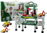 Prezentowany zestaw składa się z dużej konstrukcji stolika z bocznymi półeczkami, na której umieszczone są przeróżne narzędzia i akcesoria. Zabawka posiada neutralną, prostą kolorystykę ? to połączenie czerni, zieleni i jasnej szarości. Niektóre z narzędzi posiadają czerwone detale, jednak wszystkie są bezpieczne dla maluchów. Każda z zabawek odznacza się rewelacyjnym wzornictwem, a także rozmiarem dostosowanym do rąk kilkuletnich chłopców.