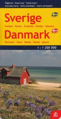 Mapa Szwecji i Danii z naniesioną dokładną siecią drogową z podaną odległością pomiędzy większymi miastami. Na mapie znajdują się informacje dotyczące obiektów turystycznych, popularnych miejsc, czy parków narodowych.