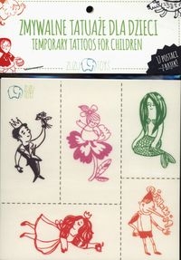 Zestaw 17 zmywalnych tatuaży dla dzieci przedstawiających postaci z bajek.