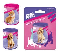 Temperówka z zasobnikiem na strużyny, w formie lśniącego kubeczka z lakierowanej blachy. 2 ostrza ? do ostrzenia kredek i ołówków standardowych, oraz w rozmiarze jumbo