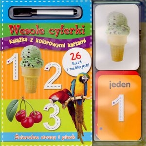 Ucz się pisać cyferki dzięki książeczce ze ścieralnymi stronami. Znajdziesz tu wiele ćwiczeń, obrazków i zadań rysunkowych. Baw się kolorowymi kartami i naklejkami, poznając cyferki. Rysuj ścieralnym pisakiem! W komplecie z książką znalazł się ścieralny pisak oraz 26 kart i naklejek. Możesz również nauczyć się pisać litery z innym tytułem serii - "Wesołe literki".