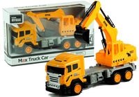Koparka z dźwigiem oklejona jest przykuwającymi wzrok naklejkami, które imitują prawdziwe pojazdy z placu budowy, co w połączeniu z charakterystycznym kolorem czyni ją doskonałą zabawką. Wykonany z materiałów wysokiej jakości zestaw składa się z koparki z dźwigiem oraz ruchomą łyżką, zapakowany jest w pudełko, dzięki czemu nadaje się na prezent dla dziecka, jak i jego przyjaciół.