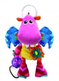 Kolorowa zawieszka wykonana jest z miękkiego materiału. Posiada szeleszczące element: skrzydła, nóżki oraz kwiatuszek który trzyma w jednej z łapek. Dodatkowymi elementami jest grzechotka z kolorowymi koralikami w środku i bezpieczne lustereczko na ogonku. Szeleszczące elementy, różne struktury i kolory zachęcą każdego malucha do zabawy pobudzając i wspomagając przy tym rozwój zmysłu wzroku i słuchu. Wygodny uchwyt umieszczony w zabawce pozwoli na zabranie jej wszędzie ze sobą i umieszczenie w dowolnie wybranym przez nas miejscu: wózek, łóżeczko, nosidełko-fotelik samochodowy jak również zamiennie do maty edukacyjnej.