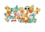 Zestaw artystyczny do ozdabiania brokatem. 4 tablice tekturowe z naszkicowanym rysunkiem. Każdy element jest ponumerowany i pokryty klejem zabezpieczonym taśmą przezroczystą. Dziecko odrywa fragment naklejki i posypuje kolorowym brokatem. Brokat przykleja się a jego nadmiar zsypujemy z powrotem do pojemniczka i odklejamy następny kawałek... Do podważania naklejki służy specjalny rysik, dołączony do zestawu.