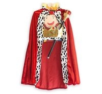 Czerwona welurowa peleryna zdobiona białym obszyciem w czarne centki.