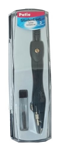 Cyrkiel z kompletem zapasowych rysików, w plastikowej kasetce.