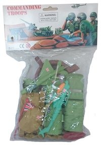Zestaw wojskowy: - figurki żołnierzy - samochody wojskowe - samolot - czołg Zabawka dla dzieci w wieku powyżej lat 3.