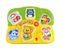 Ułóż właściwie puzzle, aby usłyszeć w nagrodę dźwięk. Popatrz na migające światełka i posłuchaj wesołych melodii. Zabawka ma regulację głośności. Porównywanie kształtów i właściwe dopasowanie ich ćwiczy koncentrację dziecka. Elementy są łatwe do chwycenia. Dopasowywanie obrazków i kształtów rozwija koordynację wzrokowo-ruchową oraz ćwiczy sprawność dłoni i palców.